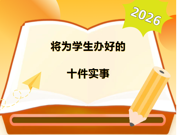 亲爱的同学们:2026年如约而至,你们的健康成长需求始终是学校办学的核心关切。经过前期广泛征集、讨论研究,确定本年度为学生办好的“十件实事”。一起来看看吧…持续